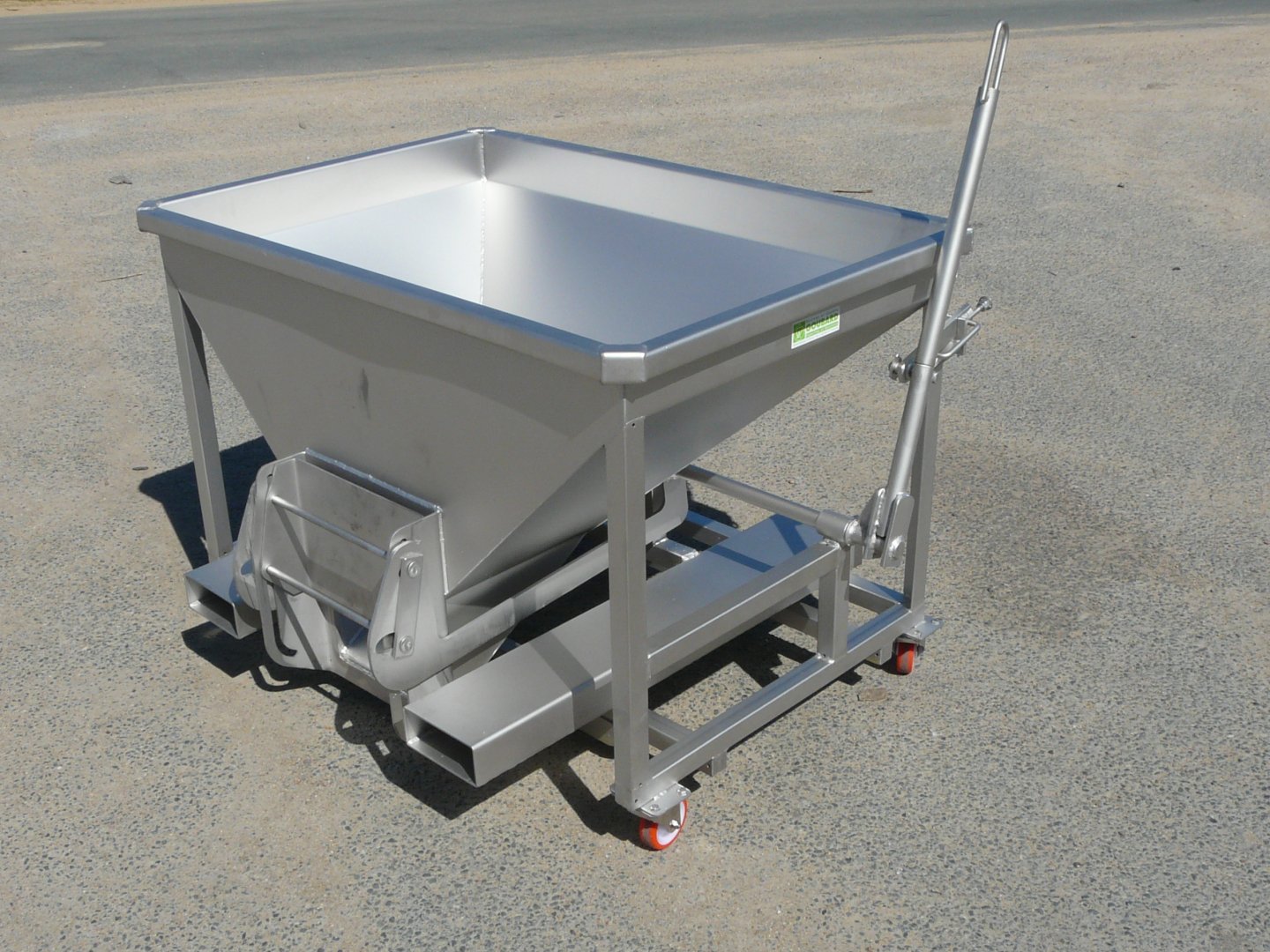 Trémie à guillotine avec trappe étanche en option pour transport de vendangeTrémie prise fourches chariot élévateur, modèle avec ou sans roues